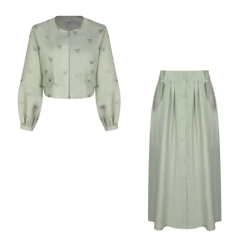 ست کت و دامن زنانه نیزل مدل 18 رنگ سبز