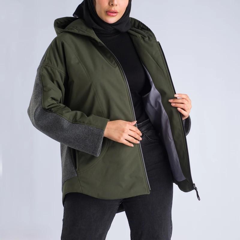 کاپشن زنانه عصر جدید مدل 3047-1 رنگ زیتونی